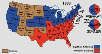 Президентські вибори 1888 року проходили 6 листопада. На них президент Гровер Клівленд набрав більше голосів виборців, ніж його суперник від республіканців Бенджамін Гаррісон, але програв по голосах виборників (168 — у Клівленда проти 233 — в Гаррісона). В результаті 23-м президентом США став колишній сенатор від Індіани Бенджамін Гаррісон. Таким чином, повторилася ситуація виборів 1876 року, де кандидат, що набрав найбільшу кількість голосів, тим не менше не став президентом. Наступного разу подібна ситуація виникла лише через 112 років — на виборах 2000 року.