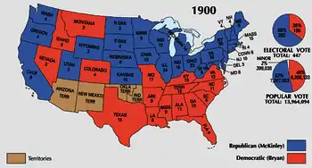 Президентські вибори 1900 року проходили 6 листопада та виявилися переграванням попередніх виборів: кандидат-республіканець, тепер уже як президент, Вільям Мак-Кінлі знову випередив демократа Вільяма Дженнінгса Браяна. Повернення Сполучених Штатів до економічного процвітання та особливо здобута 1898 року перемога в іспано-американській війні значно посилили позиції Мак-Кінлі.