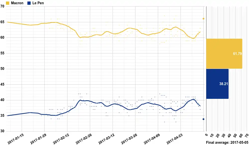 | OpinionWay | 29 квітня–1 травня 2017 | 1764 | – | 60 % | 40 % | |||||||||