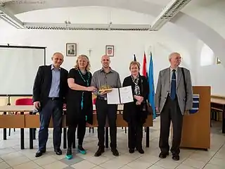 Нагорода доктора Івана Шретера 16 травня 2016 року в мерії міста Пакрацу; Маріо Грчевич, Санда Хам, переможець конкурсу Хрвой Сеньєш, Наташа Башич і Ігор Чатич