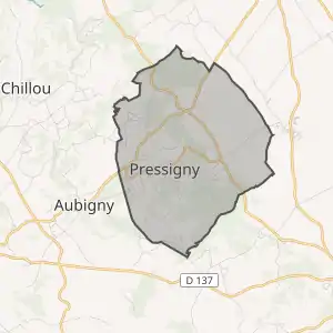 - Розташування муніципалітету Прессіньї на мапі Франції та сусідні муніципалітети