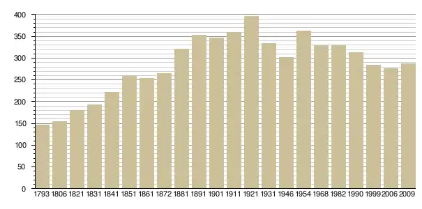 Динаміка населення (base Cassini de l'EHESS pour les nombres retenus jusque 1962[3], base Insee à partir de 1968 (population sans doubles comptes puis population municipale à partir de 2006)[4] · [5] ):