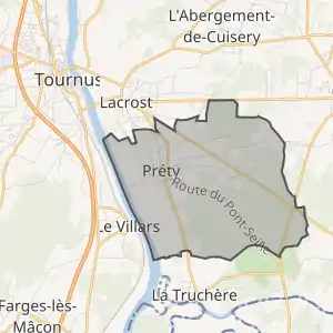 - Розташування муніципалітету Преті на мапі Франції та сусідні муніципалітети