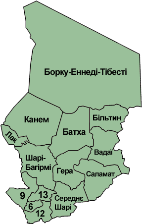| 3 | Борку-Еннеді-Тібесті | 600 350 | 73 815 | Файя-Ларжо | Борку, Еннеді, Тібесті |