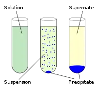 Схема, що показує різницю між розчином, суспензією, осадом і надосадною рідиною