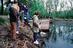 Люди прибирають річку