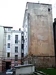 Заднє крило було майже повністю знищене під час Другої світової війни, на рештках його південної частини після закінчення війни був споруджений новий чотириповерховий флігель. Дана споруда отримала аналогічне оздоблення фасадів, як і автентичний будинок, однак відстань між новими поверхами відповідає післявоєнним радянським стандартам. Сходи будинку виконані з бетону, огорожа сходів є типовою.