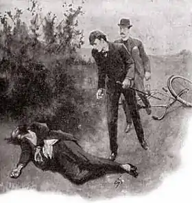 Скоро вони знаходять і сліди велосипеда вчителя, які закінчуються знайденим трупом бідолашного.