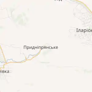 Село Придніпрянське розміщене на відстані 1 км від смт Іларіонове і за 2 км від села Любимівка. Селом протікає пересихаючий струмок.