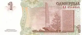 | 1 рубль | 129 × 56 мм | Помаранчевий | Олександр Суворов | Кіцканський монумент | 2000 | 2000 | ||