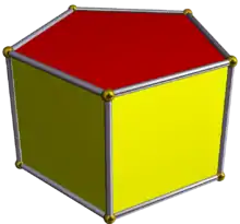 Приклад: п'ятикутна призма, {5}×{}, два паралельні п'ятикутники пов'язані п'ятьма прямокутними сторонами.