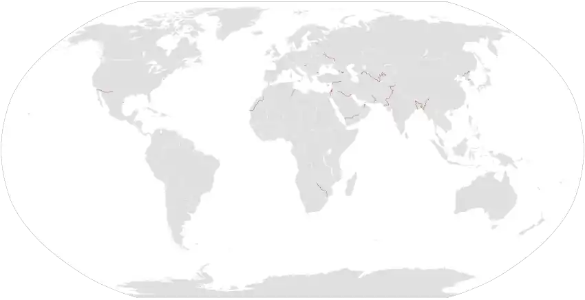 | Державний кордон з Мексикою | 1991 | Залізобетонний вал, металевий паркан та колючий дріт | 1128 км[3] | Будівництво призупинено[4] | Антиконтрабандна та антиімміграційна політика | |