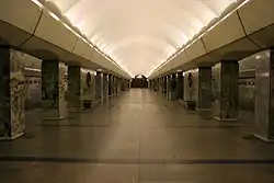 Конструкція станції — колонно-стінова трисклепінна глибокого закладення.