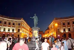 Не менший інтерес викликає головна вулиця Одеси Дерибасівська, названа на честь Де Рібаса, і примикає до неї площа Грецька. В даний час велика частина вулиці і площа — пішохідні зони та з Міським садом — є одним із найулюбленіших місць для відпочинку і прогулянок жителів і гостей міста.