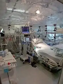 кімнати. Це передбачає вентиляцію, яка створює "від'ємний тиск" (тиск нижчий за навколишнє середовище), щоби повітря могло надходити в ізоляційну кімнату, але не виходило з неї, оскільки природне повітря буде надходити з областей з більш високим тиском в місця з нижчим тиском, і тим самим запобігатиме потраплянню забрудненого повітря в сусідні приміщення. Ця методика використовується для ізолювання хворих на повітряно-інфекційні захворювання, такі як: туберкульоз, кір, вітряна віспа, тяжкий гострий респіраторний синдром (ГРВІ-CoV), респіраторний синдром Близького Сходу (MERS-CoV), грип та коронавірусна хвороба 2019 (COVID-19).