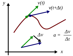 Нехай матеріальна точка в момент часу t має швидкість , а в момент її швидкість (див. рисунок). За означенням, середнє прискорення за час Δt