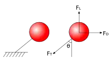 де це сила виштовхування, це гравітаційне прискорення 9.81 м/с², r радіус кулі, and щільність навколишнього повітря. Результуюча підйомна сила аеростат , отримується з відніманням ваги оболонки кулі і гелію, що знаходиться всередині кулі, і матиме наступний вираз: