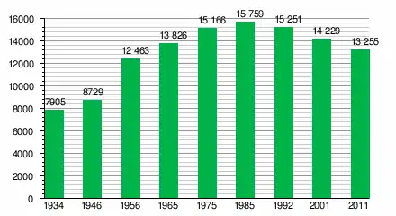За даними перепису населення 2011 року у місті проживали 13 255 осіб.