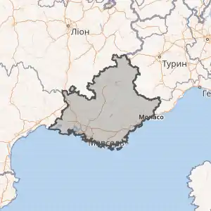 ![]() Карта Франції з позначенням регіону Прованс — Альпи — Лазурний Берег | |||||||||||||