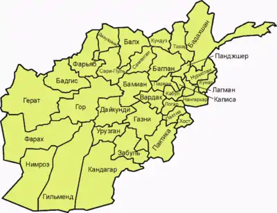 | Баміан | Bāmiyān | بامیان | BAM | 343,892 | 14.175 | Баміан | Bāmīān |