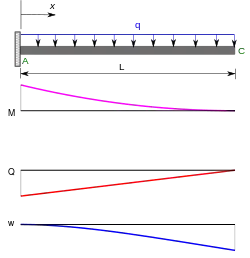 - Консольна балка, навантажена рівномірно розподіленим зусиллям