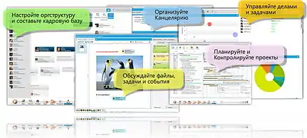 - Group-Office, для загального доступу до календарів, файлів, e-mail, CRM, Projects, Mobile Synchronization тощо.