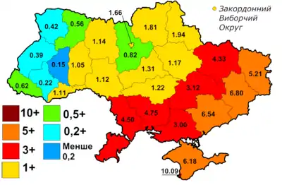 | Обласні ради та рада м. Києва[2] | 0 / 1820 |