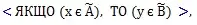 де А – передумова (посилка чи антецедент), В — висновок (дія чи консеквент). Передмову та висновок виражаюсь через факти, якими описують предметну область.