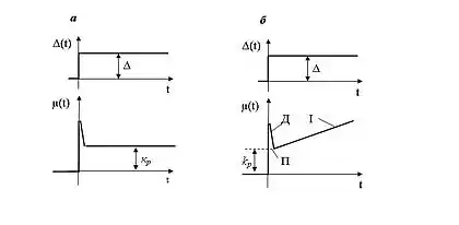 Позитивною особливістю даного закону є те, що регулювання ведеться з урахуванням як величини відхилення регульованого параметра, так і швидкості його зміни. Чим крутіший фронт відхилення вихідної величини, тим на більшу величину переміщається робочий орган (рис. 1 а). Як тільки припиняється зміна регульованої величини, регулятор починає відпрацьовувати пропорційну частину. Ефект передування значно підвищує якість перехідного процесу.