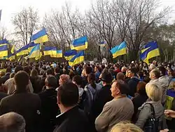 5 березня біля будівлі міськради близько 500 прихильників цілісності України зібралися на антивоєнному мітингу.[64]