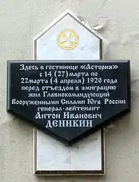 У 1914 році дерев'яний залізничний вокзал замінили на кам'яний, який пізніше під час війни зруйнували, а після її закінчення знову відновили. Майже одночасно з вокзалом з'явився готель «Асторія», а до неї примикала будівля Петроградського банку. Там, де зараз знаходиться кінотеатр «Крим», розташовувалася жіноча гімназія, яка пізніше стала школою № 1. На Катерининському проспекті знаходилася багато готелів, будували ресторани і кав'ярні. З 27 березня по 4 квітня 1920 року в «Асторії», перед еміграцією, проживав генерал-лейтенант Антон Іванович Денікін, про що свідчить меморіальна дошка.