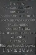 Анотаційна дошка на честь Академіка Глушкова