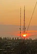 | Вигляд з телевежі на проспект і с. Піщане | Телевежа | Житловий будинок на початку проспекту | Храм великомучениці Катерини | ||||