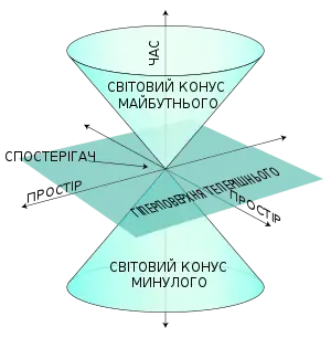 Кожній події відповідає точка простору Мінковського (світова точка), в лоренцових (або галілеєвих) координатах, три координати якої являють собою декартові координати тривимірного евклідового простору, а четверта — координату , де — швидкість світла, — час події. Сукупність світових точок, які описують рух частинки (матеріальної точки) у часі, називається світовою лінією.