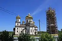 Новий мурований храм біля дерев'яної церкви Св. Івана Богослова ХІХ ст. с. Просіка