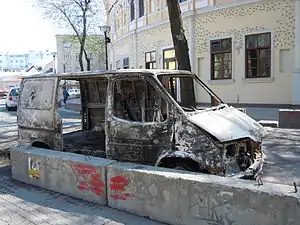 - Пророссийский лагерь на Куликовом поле сожжен (фото, видео). trassae95.com (рос.). 02-05-2014. Архів оригіналу за 03-05-2014. Процитовано 03-05-2014.