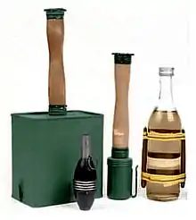 Під час Зимової війни фінська армія, якій катастрофічно не вистачало ефективної протитанкової зброї, широко використовувала важкі фугасні гранати. Фіни використовували кілька варіантів фугасних гранат в залежності від типу радянських бронемашин. Вважалося, що для пошкодження гусениці досить було 1-2 кг тротилу. Вибух часто розбивав 3-4 траки гусениці, дещо пошкоджуючи коток. Вдало розташована граната руйнувала коток. Нерідко ушкоджувався і балансир, вірніше розбивався його підшипник. Трьох кілограм тротилу, коли заряд був закинутий на дах моторного відділення танка було достатньо, щоб знищити будь-який танк, який використовується у війні. Крім фабричних гранат фугасного типу солдатами найчастіше виготовлялися кустарні пристрою з блоків вибухівки, прикріплених дротом до дощечки.