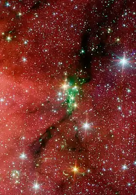 Коли густина досягає критичної межі внаслідок гравітаційної нестійкості хмара має стискатися та фрагментуватися на менші частини. Окремі частини стискаються вже незалежно одна від одної. Такий процес конденсації може відбуватися в кілька кроків, що призводить до утворення зір у вигляді скупчень або асоціацій. Утворення окремої зорі відбувається з хмари з концентрацією частинок 104—106 на кубічний сантиметр і температурою близько 10 К. Газові хмари з такою концентрацією насправді спостерігаються. Вони складаються переважно з молекулярного водню[6]. У такому стані вони непрозорі для видимого світла та електромагнітного випромінювання з меншою довжиною хвилі, але прозорі для інфрачервоного випромінювання з довжиною хвилі понад 1 мкм[7].