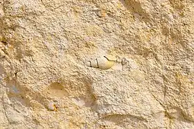 Раковина скам'янілого викопного молюска в юрському вапняку