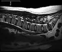 ![]() Протрузія диска на МРТ Протрузія диска на МРТ | |