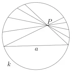 - Евклідова аксіома про паралельні явно не виконується в цій моделі, оскільки через точку , що не лежить на даній хорді , проходить скільки завгодно хорд, що не перетинають її.