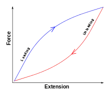 При циклічній зміні напруження пружна енергія незворотно перетворюється у тепло. Оскільки внутрішні процеси, що приводять до статичного пружного гістерезису, мають місце за напружень, що викликають пластичну деформацію, то цей вид пружного гістерезису становить інтерес при вивченні втоми матеріалів.