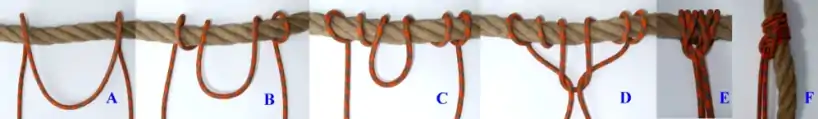 - В'яжеться з мотузки більшого чи рівного діаметра, ніж діаметр опорної;
