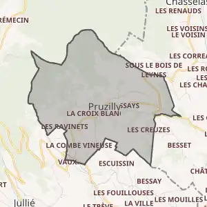 - Розташування муніципалітету Прюзії на мапі Франції та сусідні муніципалітети