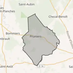 - Розташування муніципалітету Прюньє на мапі Франції та сусідні муніципалітети