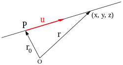 називається прямою в просторі , що проходить через точку в «напрямі» .[4]