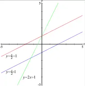 У цьому виді неможливо уявити пряму, паралельну осі (іноді в цьому випадку формально кажуть, що кутовий коефіцієнт стає нескінченним).
