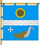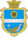 На синьому (лазуровому) полі срібна вузька мурована балка. У верхньому полі золота квітка соняшника, у нижньому — срібний ріг достатку у перев'яз зліва з якого висипається золоте зерно, який супроводжується у правому верхньому куті срібним георгіївським хрестом. Щит розміщений у золотому картуші та увінчаний золотою сільською короною.