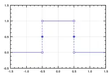 Прямокутна Функція, одиничний імпульс, прямокутний імпульс, або прямокутне вікно — кусково-стала функція, що визначається як: