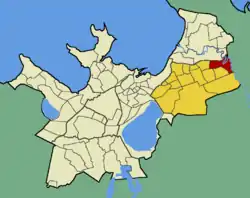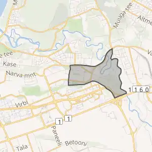 ![]() Територія мікрорайону (червоний колір) на фоні району Ласнамяє (жовтий). |
